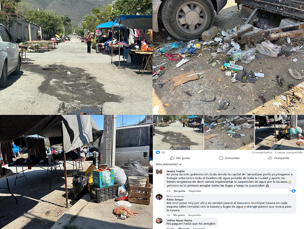 Comerciantes señalan basura, baches y una fuga de agua sin atender desde octubre; pese a ello, aseguran que les cobran 25 pesos por “uso de piso” de manera obligatoria.